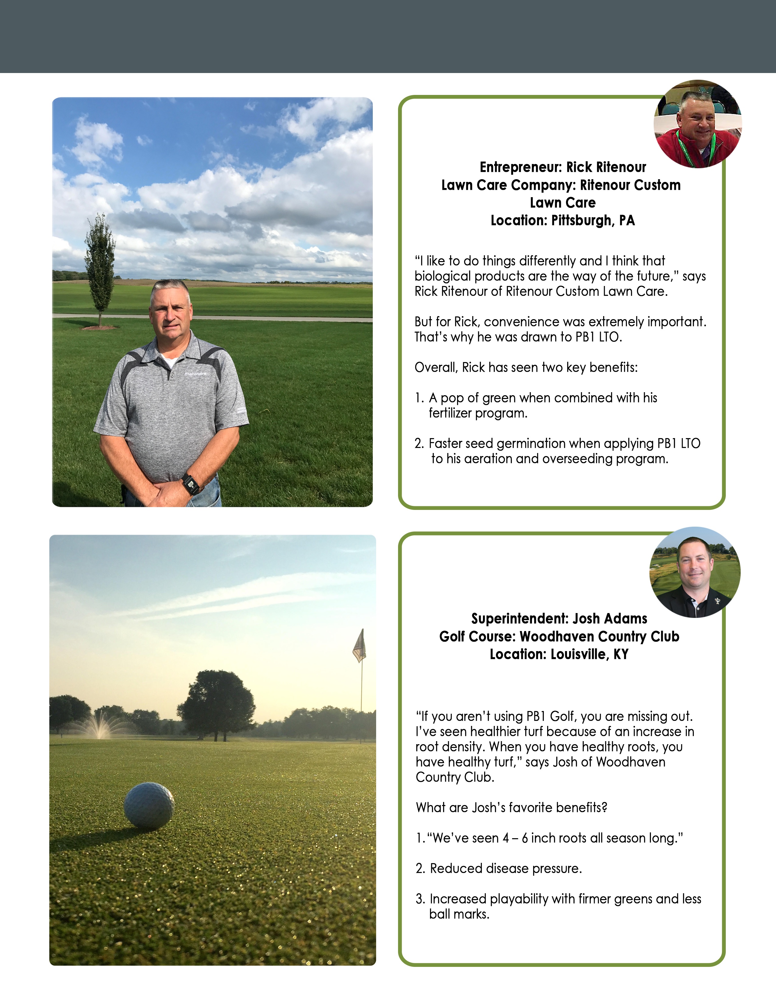 "If you aren't using PB1 Golf, you are missing out," states Woodhaven Superintendent Josh Adams. Josh has been using PB1 2-0-0 for 18 months now and is excited by his results. Read our PB1 case studies to learn more.